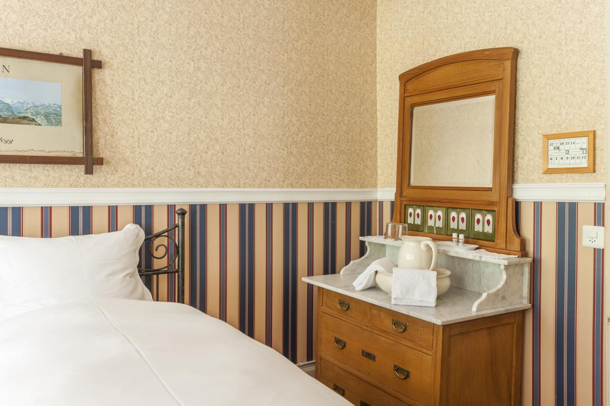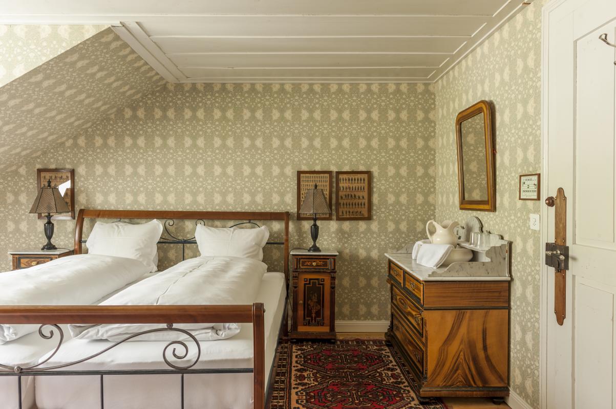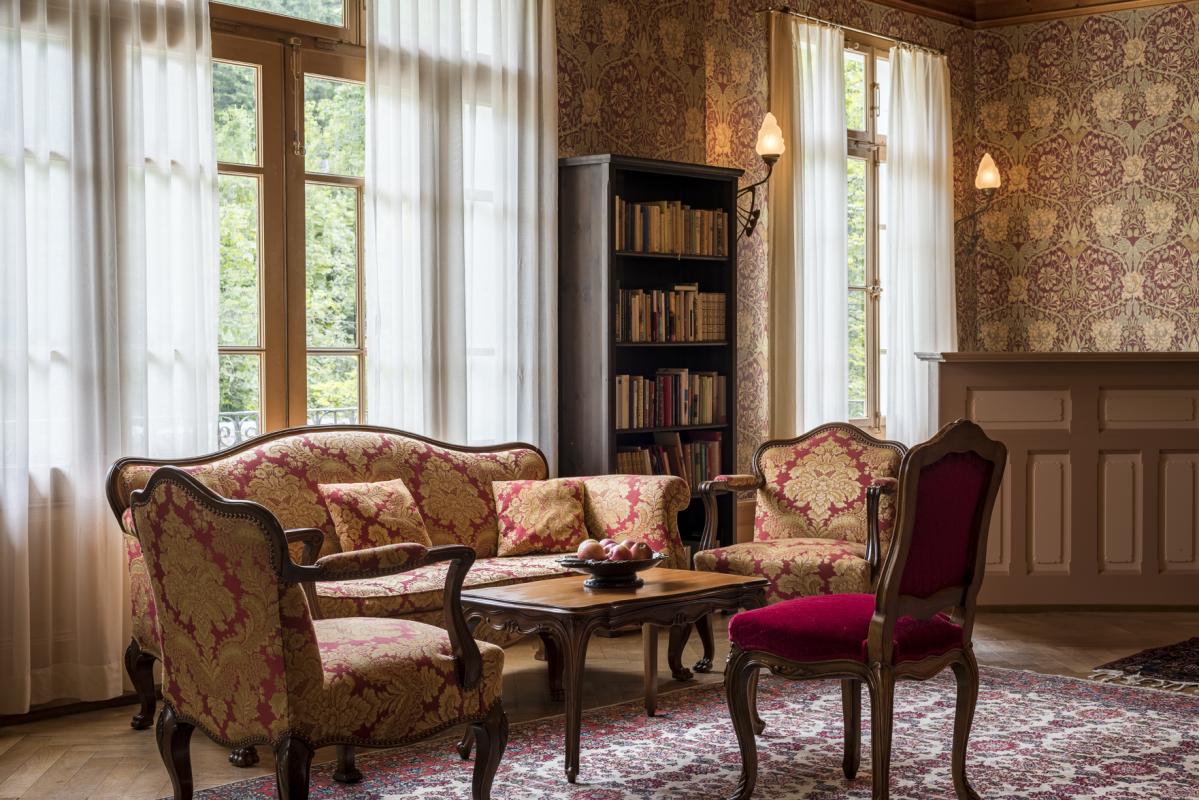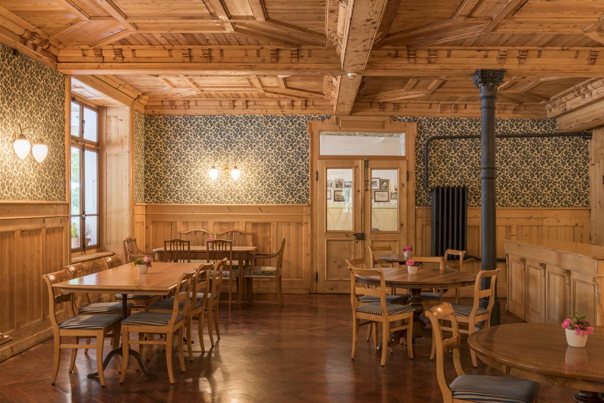 Toutes les pièces sont encore en grande partie dans leur état d’origine. Les salles spacieuses pour sociétés offrent livres, journaux, jeux et un grand espace pour converser en toute convivialité. Par contre, nous n’avons ni téléviseur, ni radio et ni raccordement à Internet. De plus l’hôtel possède une réception très limitée pour le téléphone portable. -